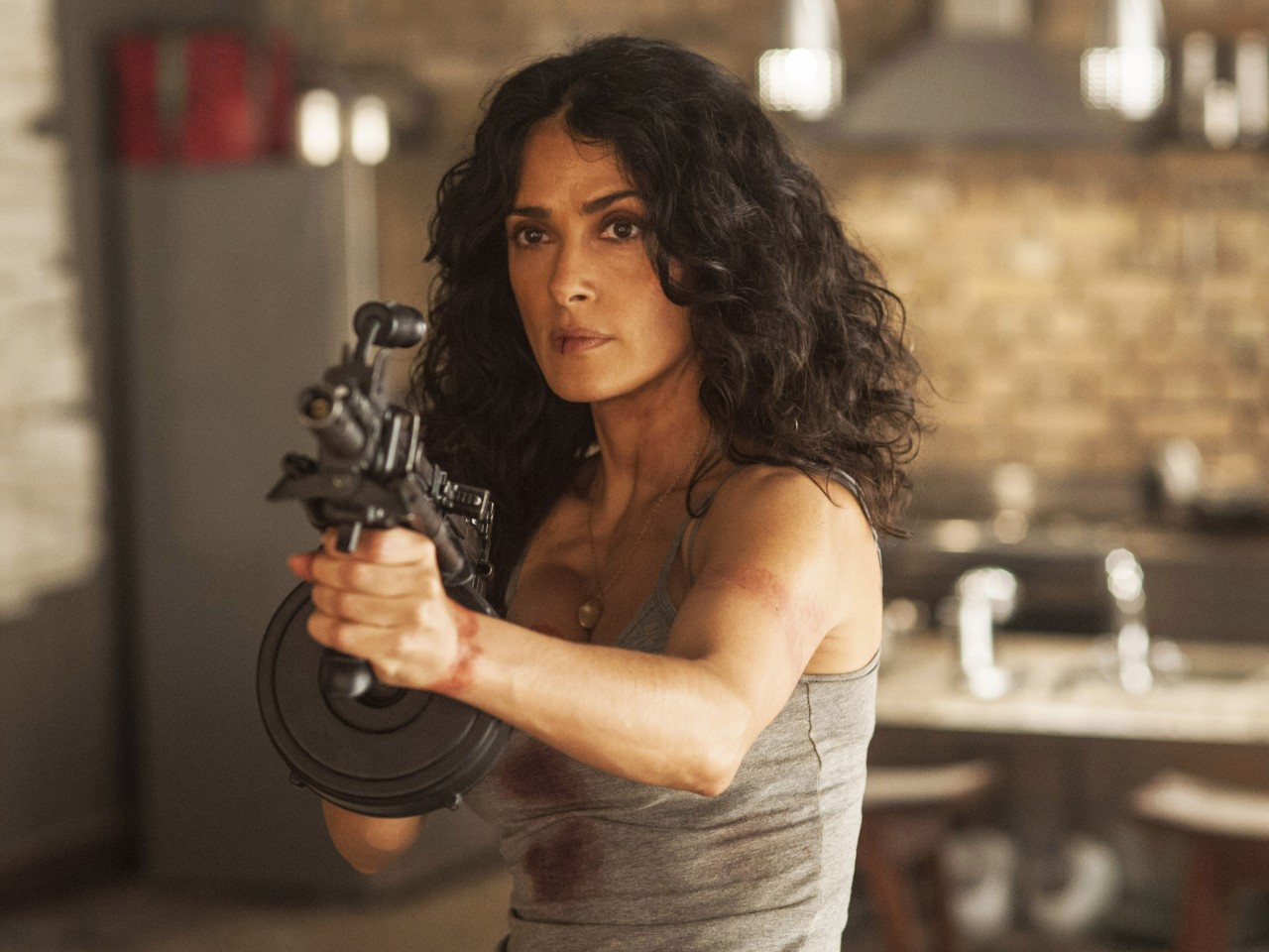 “Everly” premiered at the recent Fantastic Fest and has received a whole lot of positive reviews, the script for Everly, penned by newcomer Yale Hannon, was on the Hollywood Black List of most liked scripts in 2010. The movie is set entirely in one location where a barrage of action scenes have been staged where Hayek’s character fights and fends off a war in her apartment in order to stay alive.