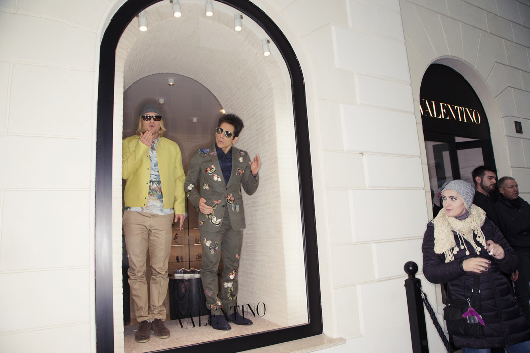 The actors, who attended the premier of “Zoolander 2” in Rome on Saturday night, along with colleagues Will Ferrell and Justin Theroux, posed in the shopping windows of Valentino flagship on Sunday afternoon. The Roman-based fashion house collaborated with the movie’s costume designer Leesa Evans on a range of outfits for the comedy.