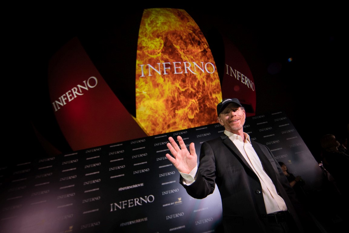 Hollywood legends Tom Hanks and director Ron Howard led the red carpet event for Columbia Pictures & IMAGINE Entertainment’s new action-thriller “Inferno” in Singapore June 14, taking the film’s promo tour to Asia. Joining them is acclaimed Indian actor Irrfan Khan who alo stars in the film.