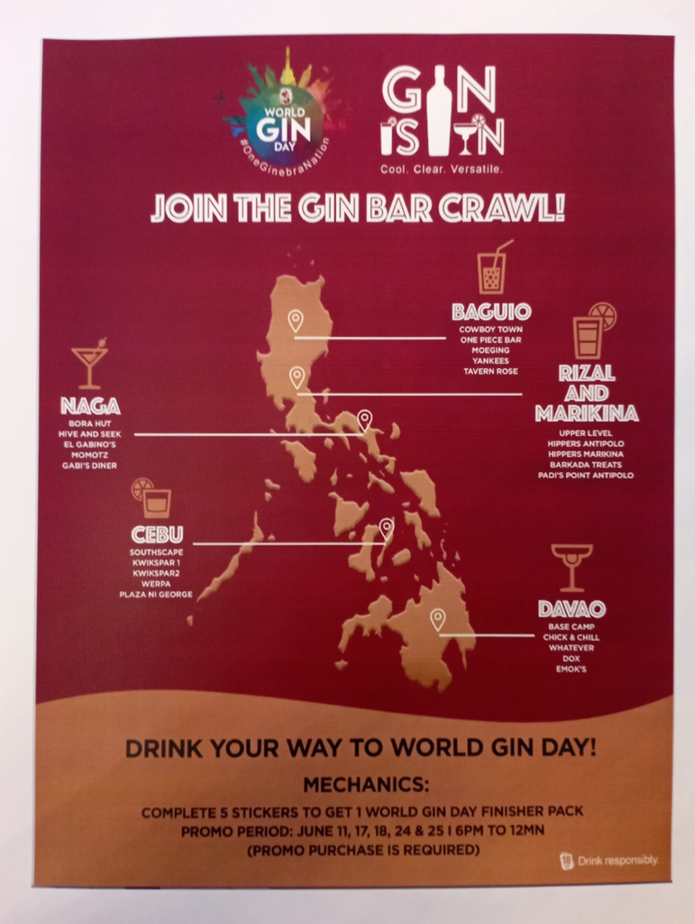 Apart from the Gin Bar Crawl challenge, other WGD activities include online videos on the gin attributes and gin-drinking experience as well as pocket events on June 11 in Baguio, Naga, Cebu, and Davao to drum up the celebration.